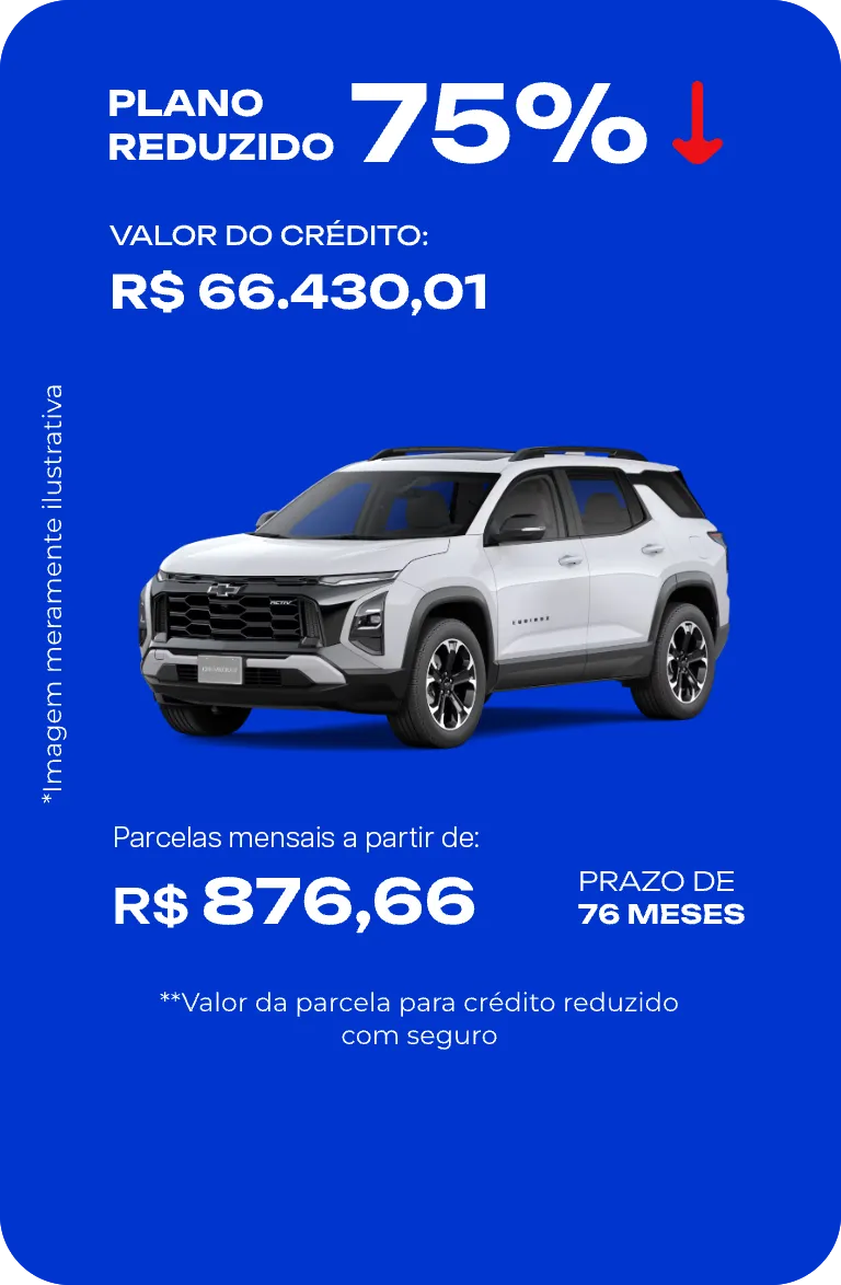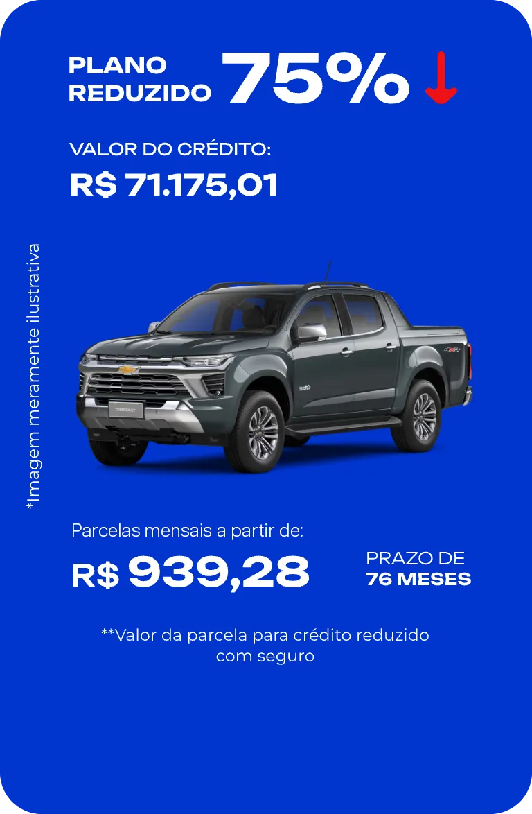 Escolha o tipo de veículo (moto, carro ou caminhonete) e o valor da carta de crédito que melhor se encaixa no seu sonho e no seu bolso.